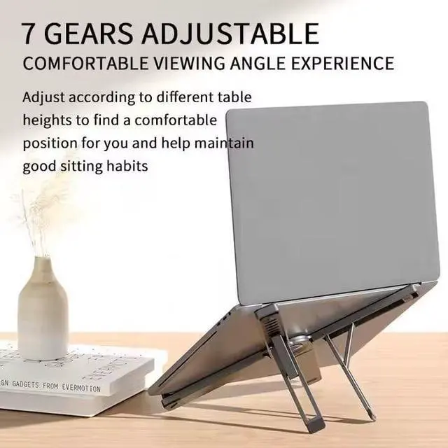 Foldable & Portable Laptop Stand for Desk, Light Weight Alloy Silicon, Ergonomic Aluminum Riser with 7 Adjustable Heights, Compatible with Laptop 10-16' and Tablet