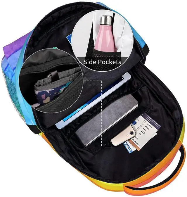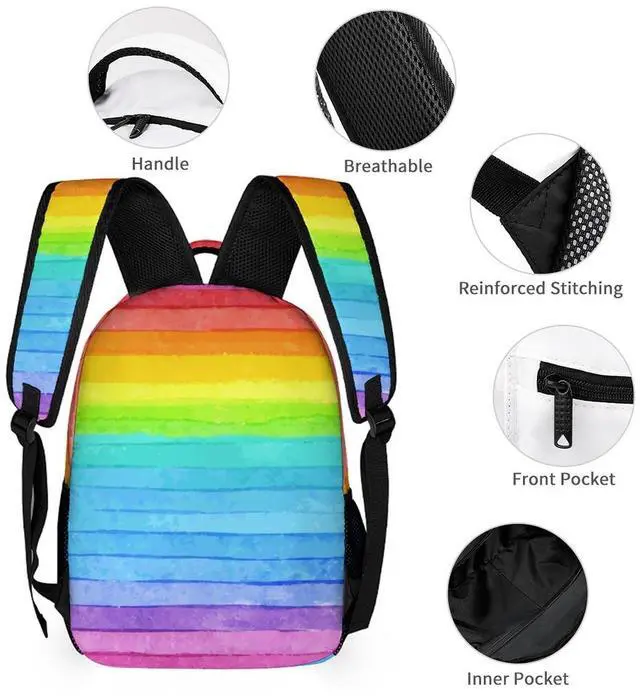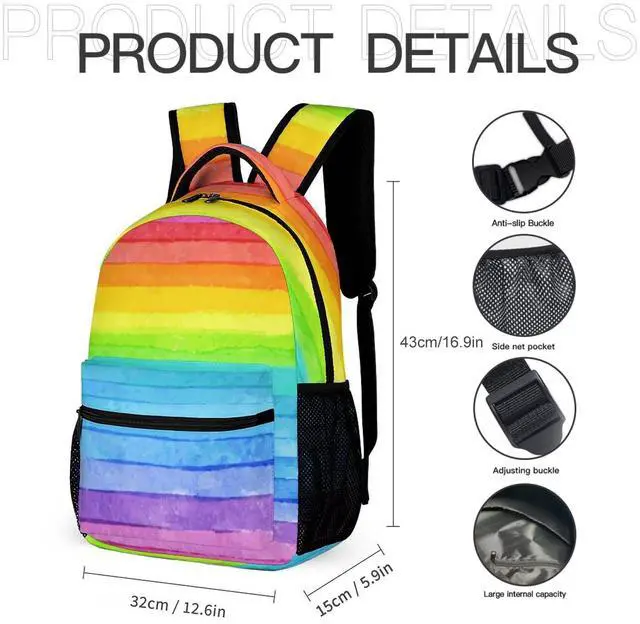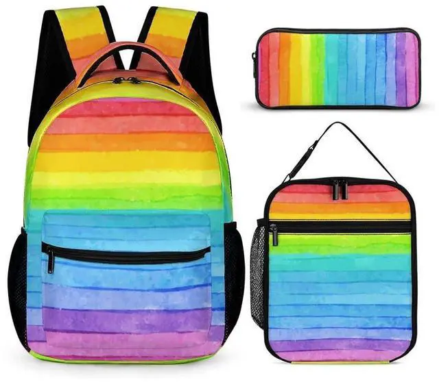 Vibrant Novelty Design Colorful and playful novelty pattern appeals to both boys and girls, perfect for daily school use or outdoor activities. ^^ 3-in-1 Value Set Includes 1 backpack (main compartment + front pocket + side mesh pockets), 1 insulated lunch box, and 1 multi-compartment pencil case all essentials in one! ^^ Premium Twill Polyester High-density polyester fabric resists tears and abrasions, ensuring long-lasting durability even with heavy daily use. ^^ Ergonomic & Practical Backpack features padded breathable shoulder straps for comfort; lunch box has thermal insulation; pencil case keeps stationery organized.