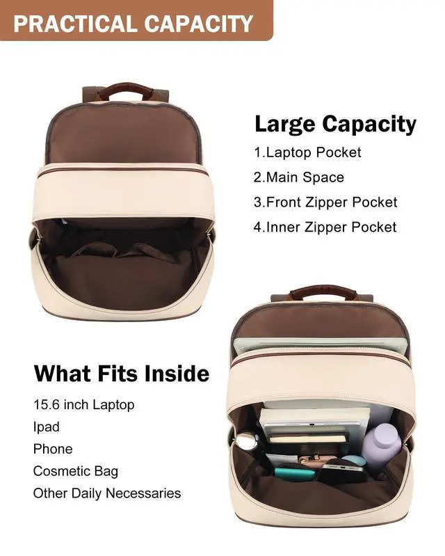^^ Functional Multi-Pocket Structure: Featuring a top zipper with a wide vertical opening and muti pockets, this backpack provides organized storage for your essentials, including a laptop compartment, interior and exterior pockets for convenient access. ^^ Ideal Size for Daily and