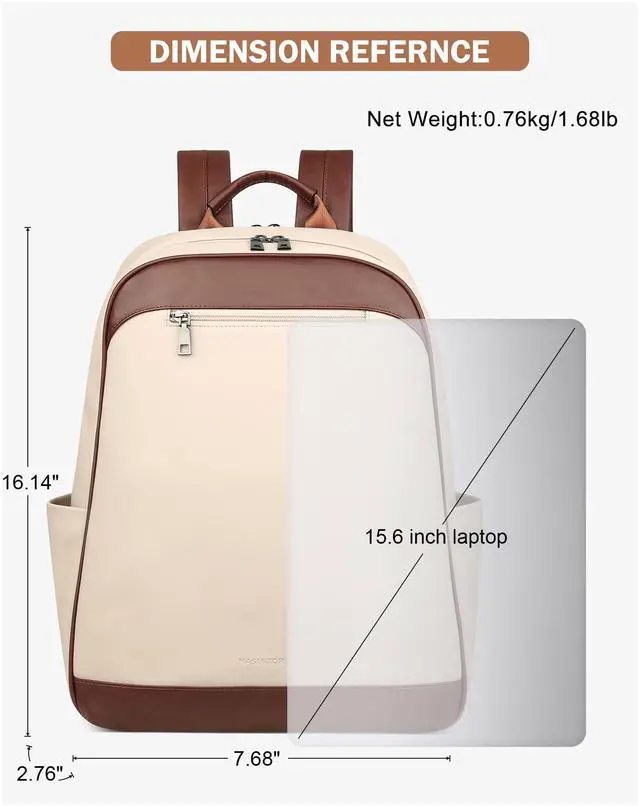 Travel Use: Measuring 7.68 x 2.76 x 16.1 inches and weighing 1.68 lb, it comfortably fits a 15.6 -inch laptop and other essentials, making it perfect for everyday use, study, or short trips.