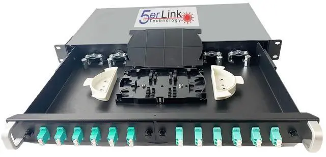 24 Strand 1U Fiber Optic Cable Rack Mount Enclosure the ultimate solution for seamless fiber optic connectivity and organization. Designed to fit flawlessly within standard 19-inch racks or cabinets, this cutting-edge fiber optic box comes equipped with 12 LC Duplex Couplers, offering unparalleled convenience and efficiency in managing your fiber optic connections. Crafted to meet the demands of modern networking and communication setups, this rack mount enclosure boasts a generous capacity of 24 fiber strands, making it an ideal choice for both small-scale installations and larger, more intricate networking environments. The LC Duplex Couplers ensure swift and reliable connections, allowing you to effortlessly establish links between various devices and systems.