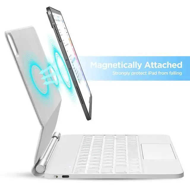 Seamless Magnetic Attachment & Protection: Powerful magnets ensure a secure and stable connection between the keyboard and your iPad. The premium leather case safeguards your device from all angles against bumps, scratches, and spills. Enjoy the flexibility of a free-floating design to adjust to your perfect viewing angle. ^^