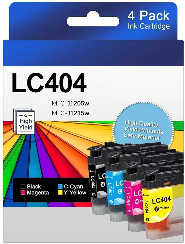 LC404 ink cartridges for brother printer CompatibleLC404 ink cartridges work with Brother MFC-J1205W MFC-J1215W MFC-J1205W XL Printer. ^^ For Brother LC404 Ink Cartridge Capacityyou can print up to 750 pages per LC404 Black, 750 pages per LC404 color cartridge (Cyan, Magenta, Yellow) (based on 5% coverage of A4 paper). ^^ For brother mfc-j1205w ink cartridgesThe new ink formula is odorless and fast drying and will not damage the printer, minimizing the risk of ink leaks and clogged print nozzles. ^^ LC404 ink cartridges for brother printer combo Package Contents1 x LC404 BK, 1 x LC404 Cyan, 1 x LC404 Magenta, 1 x LC404 Yellow.