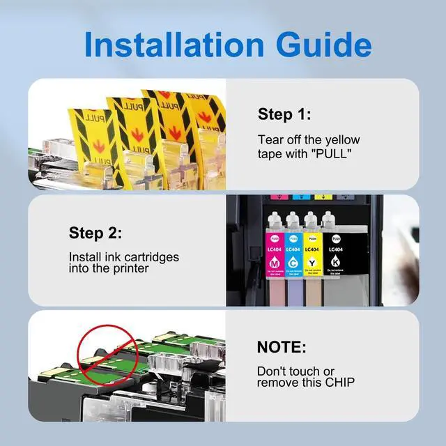Compatible for Brother LC404 ink cartridge, 4 color set. Each cartridge is individually packaged to avoid ink leakage. ^^ For brother ink cartridges LC404The use of compatible cartridges and supplies does not damage your printer. Please do not hesitate to contact us if you have any questions, our Customer Service Team will respond Very Soon