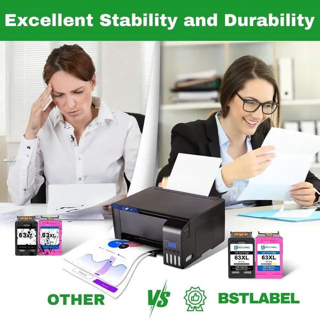 Highly Premium: BSTLABEL 63XL for hp 63 Ink cartridge combo pack are equipped with the latest upgrade intelligent chips. Remanufactured ink cartridge replacement for hp 63XL has been awarded ISO9001 certification, and we have independent laboratories periodically verify product quality to ensure a smooth user experience.