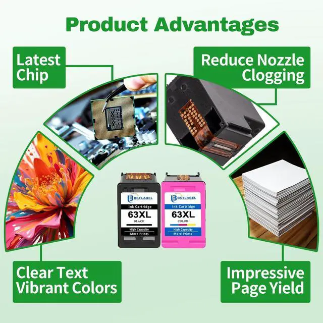 • Highly Premium: BSTLABEL 63XL for hp 63 Ink cartridge combo pack are equipped with the latest upgrade intelligent chips.Remanufactured ink cartridge replacement for hp 63XL has been awarded ISO9001 certification, and we have inde