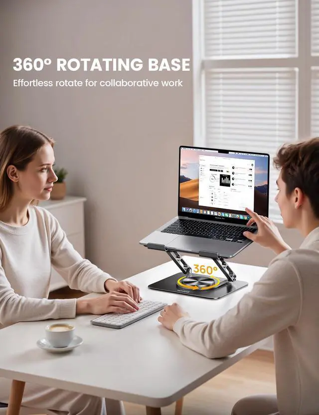 ^^ 360 Rotation: The laptop riser base supports 360 rotation, allowing you to share your screen, making it perfect for conference presentations, team collaborations, client demonstrations, and more. There's no need to move the entire laptop; simply rotate the screen to achieve more efficient communication.