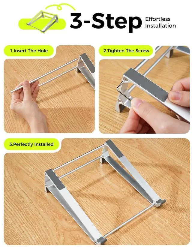 Aerospace-Grade Aluminum & Anti-Slip: Metal laptop riser crafted from lightweight aircraft aluminum (holds 30 kg! ). Silicone pads keep the base from sliding while the arms shield your device from scratches. Ideal for delivering rock-solid stability to your laptop. ^^