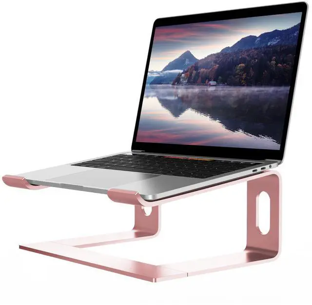 ALASHI Laptop Stand for Desk, Aluminum Computer Riser, Ergonomic Notebook Holder, Detachable Metal Laptops Elevator, PC Cooling Mount Support 10 to 15.6 Inches Notebook, Pink