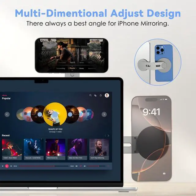 Upgraded Adjustable Magnetic Cell Phone HolderThis new upgraded adjustable magnetic cell phone stand can firmly attach your cell phone to your laptop, desktop monitor, Tesla computer monitor and other devices. Easily view text messages, answer calls, enjoy dual-screen interaction and improve work efficiency ^^ Compatible with all cell phonesSpecially designed for iPhone 16/15/14/13/12 series and other cell phones with metal rings (supports MagSafe and non-MagSafe phones). This product is not only suitable for laptops and monitors, but also for Tesla Model 3/X/Y/S car use. And with a magnetic ring, it supports all Android phones and other devices ^^ Easy to useAdsorb the phone before installation and reserve enough space for use.