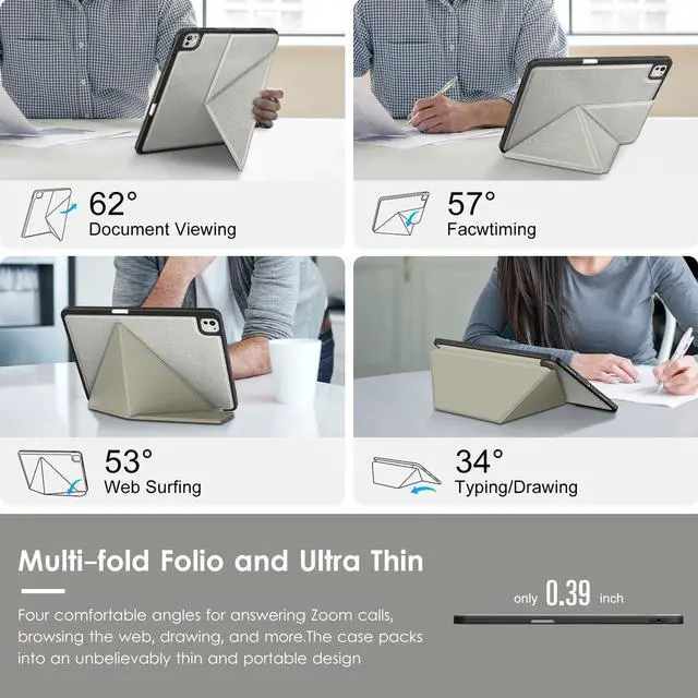 Please Note: Not compatible with any other iPad model. ^^ [Different Viewing Angles] - This iPad Pro 13 inch case can be folded in two ways, Provides four different standing angles to bring more convenience to your life. The triangle structure of the multi-fold folio ensures a stable standing position, whether in portrait or landscape. ^^ [Drop protection] - The case with a sturdy TPU back protects your iPad Pro 13 from accidental drops, bumps and shocks. ^^ [Precise Cutouts] - Full access to all features and controls without removing the stand case for iPad Pro 13 inch, such as buttons, charge ports, speakers, etc. Easy and convenient to use. ^^ [Reliable Supplier] - We Offers Lifetime Free Replacement for Your IPad Case. (Needs to be activated within 30 days of purchasing) Your Satisfaction Is Our Top Concern.