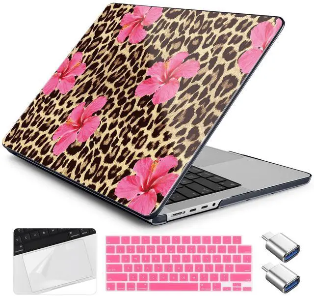 Yebiseven for MacBook Pro 14 Inch Case M5 M4 M3 M2 M1 2025 2024-2021 Model A3434/A3112/A3401/A3185/A2918/A2992/A2779/A2442,Hard Shell with Keyboard Cover+Trackpad Film+OTG Adapter, Leopard Flowers