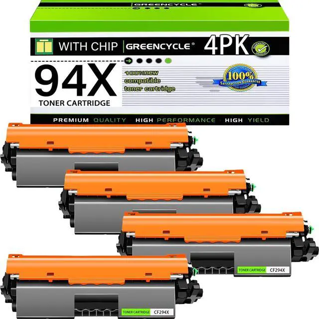GREENCYCLE 4-Pack Compatible 94X Toner Cartridge Replacement for HP 94X CF294X toenr cartridge. ^^ Stability and ReliabilityThe chip of 94x cartridge has powerful computing and processing capabilities to perform efficiently. It is stable, reliable and functionally depleted to ensure normal operation in a variety of environmental conditions.