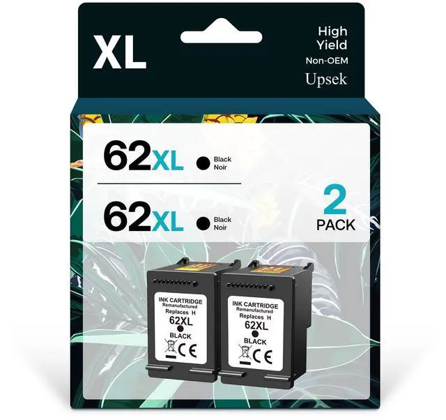 PRODUCT NAME: Compatible ink cartridges for 62 Black xl 2 Packs. NOT-OEM. ^^ HIGH YIELD 62 INK 62XL