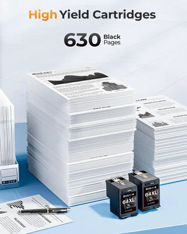 High Page Yield: up to 630 pages per 64xl black ink cartridge for hp 64xl ink cartridge (At 5% coverage, A4 paper) ^^ 64 xl