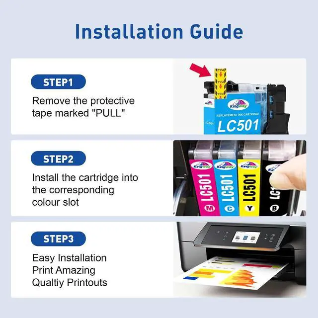 New Upgraded Chips: LC501 ink cartridges are equipped with the latest smart chip to ensure full compatibility and a seamless printing experience. Just simply insert the cartridge and start printing smoothly to use