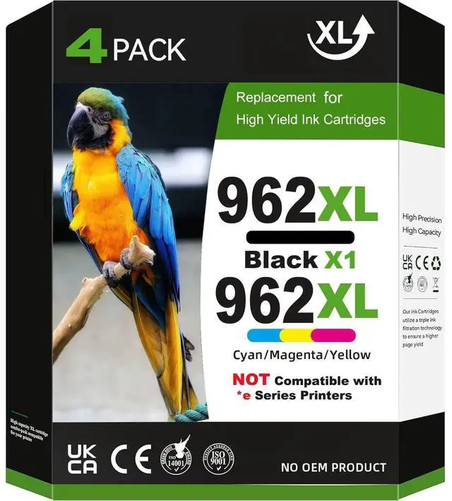 Package Contains: 4 Pack 962xl ink cartridges.1 x 962xl black ink cartridge for hp 962xl ink cartridges combo pack, 1x 962xl Cyan, 1x 962xl Magenta, 1x 962xl Yellow Cartridges(This is Not an OEM product)