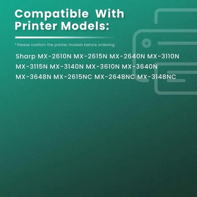 Compatible Printer: Sharp MX-2610N MX-2615N MX-2640N MX-3110N MX-3115N MX-3140N MX-3610N MX-3640N MX-3648N MX-2615NC MX-2648NC MX-3148NC ^^