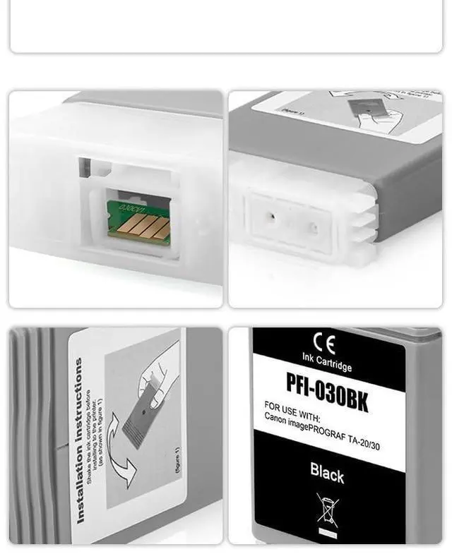 ^^ Wram Tips: PFI-030 Ink Tank Before installation. You can shake the toner cartridge up and down or left and right to make the toner cartridge flow well and the product particles uniform. ^^ Every PFI-030 Ink have been inspected strictly to ensure the best printing effect with sharp texts, crisp images and stable compatibility, NO fading with high solution.
