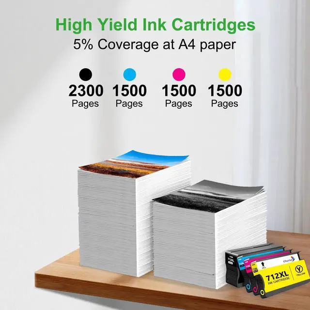 712xl for hp Ink Cartridge Capacity Up to 2,300 pages per 712XL black and 1,500 pages per 712 XL color ink cartridges.(A4 Letter, at 5 Percent Coverage)