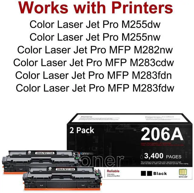 Package contents: 2 x 206A W2110A black toner (Each toner cartridge is pre-installed with an advanced chip and comes with a detailed installation guide) ^^