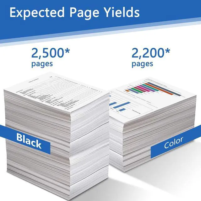 High Page Yield: 40% more Page Yield than others, Each Black toner cartridge will yield 2, 500 pages, Each Color toner cartridge will yield up to 2, 200 pages, based on 5% coverage (Letter/A4) ^^
