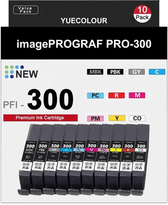 PFI-300 Ink Cartridges High Capacity Replacement for PFI 300 Ink Cartridges Replacement for Canon ImagePROGRAF PRO-300 Printer, 10-Pack (MBK/PBK/C/M/Y/PM/PC/R/GY/CO)