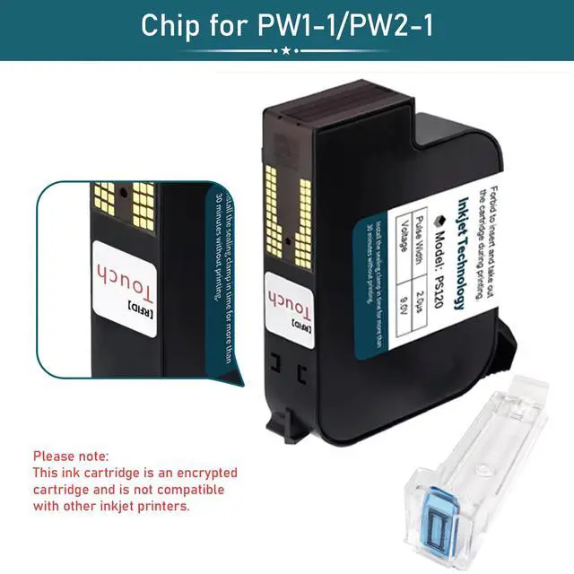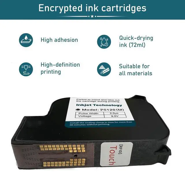 Phezer Original 72ml Black Quick Dry Solvent Ink Cartridge Replacement for 1inch/25.4mm Automatic Inkjet Coding Machine PW1-1/PW2-1 (Black, encrypted)