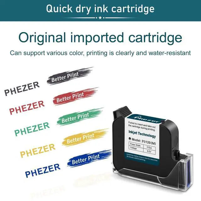 Ink Cartridge]: Phezer uses imported industrial-level of quality ink cartridges, achieving real quick drying on all printing surface. With the high quality nozzle, the printing is Smooth, Brightly and stable.