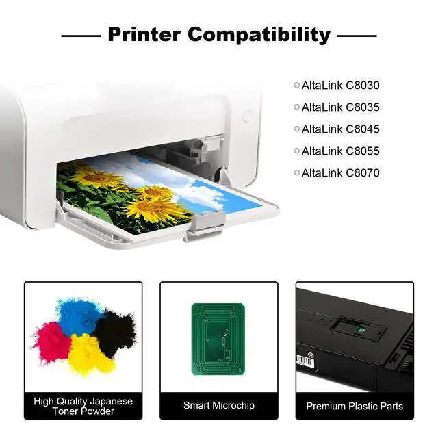 Compatible Toner Cartridge Replacement forAltaLink C8030AltaLink C8035AltaLink C8045AltaLink C8055AltaLink C8070Part NumberMagenta 006R01699 x 1PackPage Yield (at 5% coverage A4)Standard Capacity 15, 000