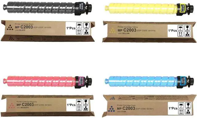 Package Contents: 4 Pack Compatible for Ricoh MP C2003 Toner Cartridges (1x Black 841918, 1x Yellow 841919, 1x Magenta 841920, 1x Cyan 841921). ^^ Wide