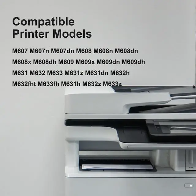 HP Printers: Enterprise M607 M607n M607dn M608 M608n M608dn M608x M608dh M609 M609x M609dn M609dhEnterprise MFP M631 M632 M633 M631z M631dn M632h M632fht M633fhEnterprise Flow MFP M631h M632z M633z*Tips: Please confirm your printer model before placing an orderReliable performance: 1. Clear text, vivid colors2. Providing clear and sharp printouts to meet your every need3. Toner Cartridge is tested strictly to ensure that it will work impeccably with your printer