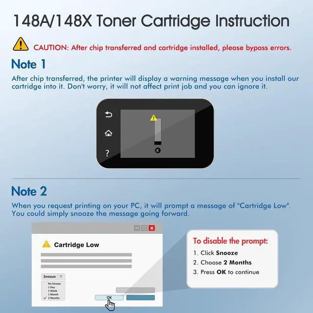 No Chip: These 148A W1480A toner cartridges do not have chips, and need to transfer chip from 148A toner. Please follow user instructions and use the tools provided to complete the chip ^^