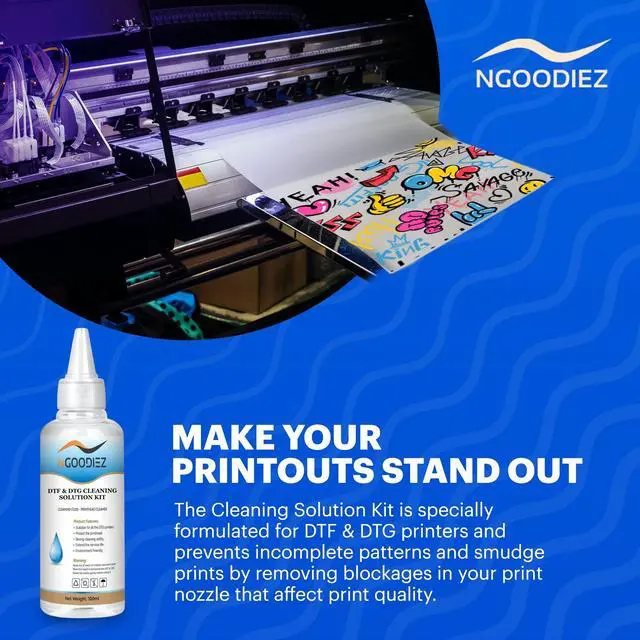 Make your printing experience better with our printhead cleaning kit and DTF Ink bundle. This all-in-one solution ensures your printer performs at its best with vibrant, high-quality prints. The cleaning kit effectively clears clogs and extends your printers life, while the DTF ink delivers vivid colors and a smooth printing experience. Compatible with a wide range of DTF and DTG printers, this bundle provides a complete maintenance and printing solution, backed by strong satisfaction guarantees.