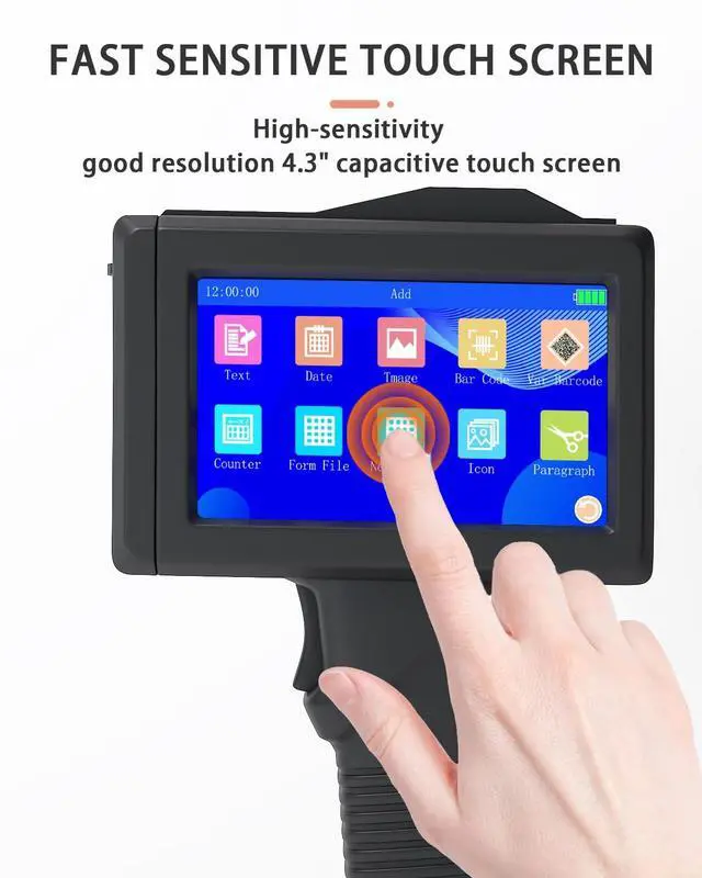 Touch Screen]: The Handheld Inkjet Printer features a 4.3 inch high-definition color capacitive touchscreen, ensuring a smoother user experience compared to traditional resistive screens. No calibration is needed, without connecting to APP, computer and cell phone. Built-in 28 languages, you can edit the print content on the machine or import more content using U-disk.