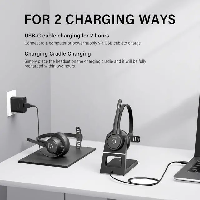 ONE-STEP AUTO CONNECTION: Bluetooth headset with microphone for PC is designed for stable connectivity and remote work anywhere like Home/Call center/Class/Cafe/Truck, simply to press MF-Button, and it will immediately pair your device after connecting the first time.