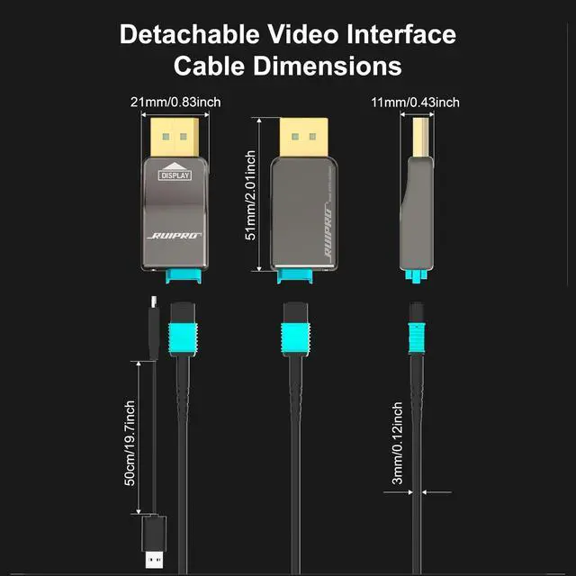 • Detachable Connector & Future Upgrade: Detachable connector allows easy routing through tight spaces, making replacement and maintenance hassle-free. It's also easier to upgrade with replaceable heads, future-proofed for video interface 2.1