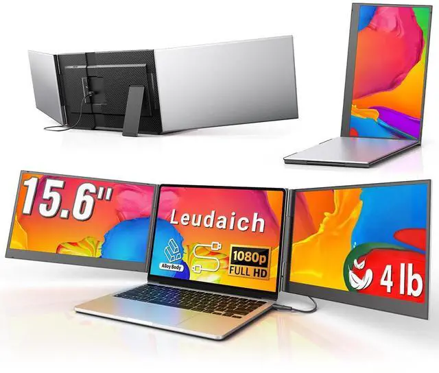 Please note: Full plug-play functionality requires our driver installation first time. ^^ 15.6 Inch FHD IPS Screen Expand your workspace with our 15.6 FHD IPS portable triple monitor. Each screen can rotate 180, delivering crisp, vibrant visuals at a 1920x1080 resolution. The 16:9 aspect ratio provides a wider viewing area, ideal for multitasking and boosting your productivity. ^^ Ultra-Slim Travel Design This 15.6 travel monitor adopts an aluminum alloy frame for excellent heat dissipation and an ultra-thin design. Measuring only 0.6 inches thick and weighing just 4 lbs, it easily fits into the included carrying bag, making it ideal for engineers, digital nomads, gamers, and everyone. ^^ Customize Mode This 15.6 portable external monitor supports extended, mirrored, and 2nd screen modes. Simply connect it to your laptop and configure the settings on your laptop to achieve a perfect multi-screen synchronization and independent display solution, eliminating the hassle of frequently switching windows and thus increasing your work productivity by 300%. ^^ Package & SupportAll items come in the gift-ready package: 1 x 15.6 '' screen, 2 x Type-C cables, 1 x USB-A to USB-C cable, 1x power adapter, 1x USB flash driver, 1x carrying bag and instructions. Your purchase comes with a 2-year warranty. Need help? Contact 'Leudaich Tech' through the "Add to Cart" pagewe'll respond quickly to help you set up and use the screen.