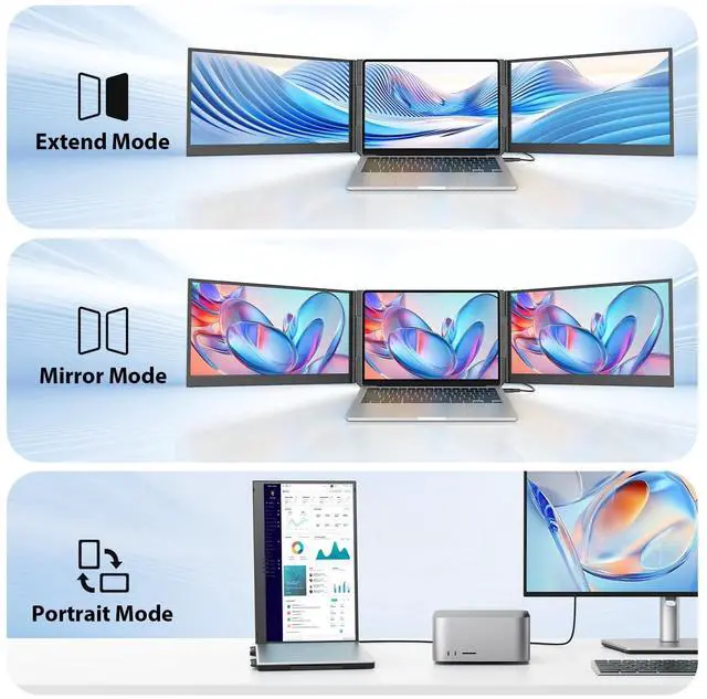 One Cable ConnectionThis 15.6 ' laptop extender utilizes the latest 2026 technology, allowing for simultaneous dual-screen display with just a single Type-C cable. Unlike other triple screen extension solutions on the market with their cumbersome connection steps and extra cables, this double monitor is much more convenient to use.