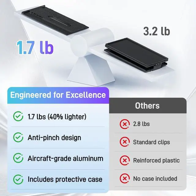 ULTRA-SLIM & TRAVEL-FRIENDLYJust 0.19 inch thick and around 1.7 lbs, this travel monitor for laptop is thinner than most smartphones and as light as a water bottle. The Vixtan portable screen for laptop slips easily into your bagideal for airports, cafes, or meetings. With a compact, professional design, this screen extender portable laptop keeps your workflow mobile and efficient. ^^ FUSION OF ALLOY STRENGTH & LIGHTWEIGHT PLASTICThe portable monitor main housing is crafted from anodized aluminum alloy for exceptional durability and heat dissipation, while the integrated stand is molded from high-strength, lightweight plastic.