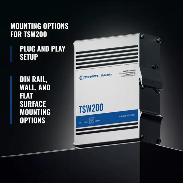 ^^ FLEXIBLE MOUNTING OPTIONS: Featuring multiple mounting options, including a DIN rail bracket, wall, or flat surface (additional kit needed), the PoE+ Switch can be easily integrated into various setups. Its compact design and flexible mounting choices make it an excellent choice for space-saving solutions in industrial, commercial, or residential applications.