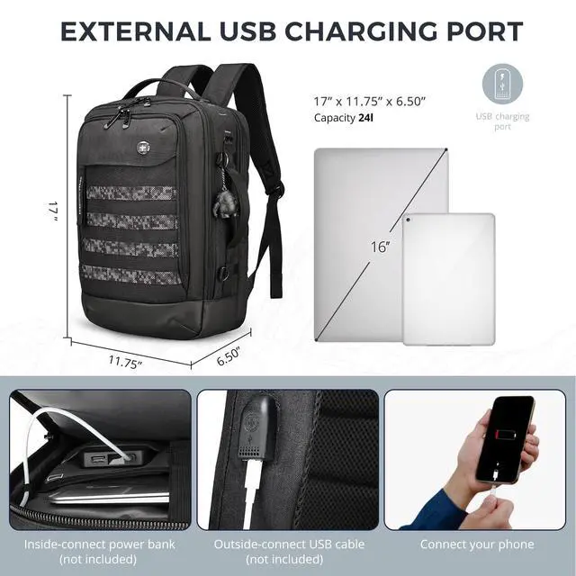 USB CHARGING PORT: Travel Laptop backpack with USB charging port, offering quick access to charge your electronic devices such as smartphones, tablets and all other USB devices on the go while using them at the same time. A powerbank is not included. A special powerbank is not required.
