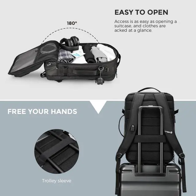^^ ADD-A-BAG SYSTEM: Travel bag with the intelligent Add-A-Bag system is not only a tremendous relief for your multi-luggage travel, but it is also extremely easy to handle. Simply connect your bag to the luggage with an integrated luggage strap. ^^ Versatile for Commute & OutdoorThis 24L backpack fits both office and adventure. It organizes your 16 inch laptop for work and adapts easily for camping trips or changing weather, keeping essentials secure and accessible. ^^ US Patent No.: US 10, 574, 071 B2, US 10, 931, 137 B2, US 10, 931, 138 B2 and US 11, 601, 009 B2.