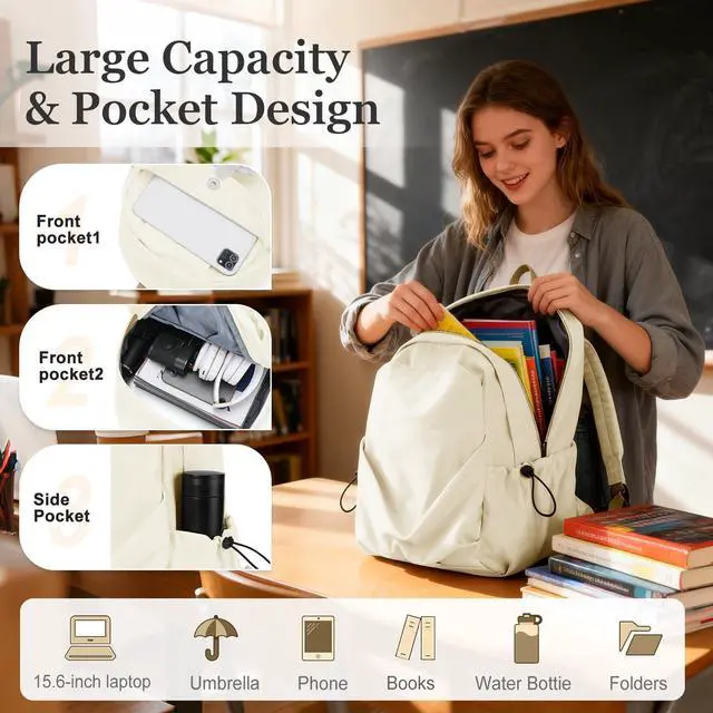 [Internal structure]: There back pack is a main zipper compartment, a separate computer compartment, small zipper pockets, a pull magnet suction pocket, two pull string side pockets and an anti-theft zipper pocket, school bookbag multiple storage pockets to keep your belongings organized and easier to find. ^^ Light and Comfortable This school bag is designed with a humane design, reinforced with adjustable wide straps to prevent the backpack from slipping, distribute stress and provide extreme comfort. Moreover, it has good ventilation and heat dissipation, and it is portable and can keep cool for a long time, making it an ideal choice for daily use. ^^ [Suitable for people] This casual backpack is a great companion for outdoor/indoor activities, whether for daily use, school, commuting, weekend vacations, short trips, camping, etc. It can be easily carried. The college backpack is available in a variety of colors. The colors are simple and unobtrusive, and there is always one that will impress you. ^^ [Anti-theft Pocket] There is an anti-theft pocket on the back of the backpack for easy access and security.