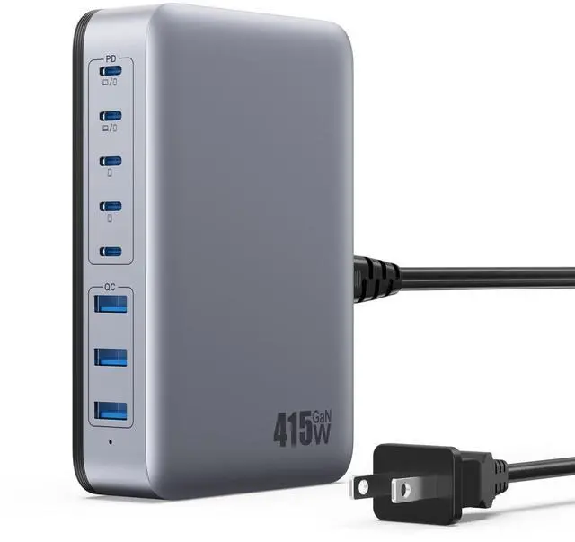USB C Charger BlockCharging StationsUSB C ChargerGaN IV USB C chargerThe Leader of The Times First-Multiport GaN USB C Charger Station Fast Charging for All Devices! GAN technology, efficient and fast charging; Save space, save time, save money, get it now! 2025 New Design USB C Charger Block, 415W GaN 8 Port PD USB C and QC USB A Wall Charger Adapter Plug Cube, Super Fast Type C Charging Station Hub for iPhone 15/14/13/12 Pro Max iPad Samsung Pixel 5ft Extension Cord!!! Product - Features8-in-1, the USB C charger Station can charge 8 devices at the same time! The USB C charger can quickly charge both your iPhone and laptop at the same time! Multiple Intelligent Protection System, monitors temperature to ensure safe charging!