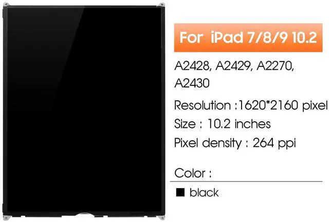 Verify ModelPlease verify that your device is For iPad 8 10.2 2020/For iPad 7 7th 2019 LCD display, compatible with A2428, A2429, A2270, A2430, A2197, A2200, A2198. If you purchase the wrong model by mistake, it will prolong the recovery time of your device and affect your life and mood. ^^ Fix phone screen problemsFor iPad 7 7th 2019 LCD Screen Replacement material is high quality and affordable, perfectly fit your device, fix all kinds of screen problems such as white screen, dead pixels, liquid leakage, broken touch, etc.