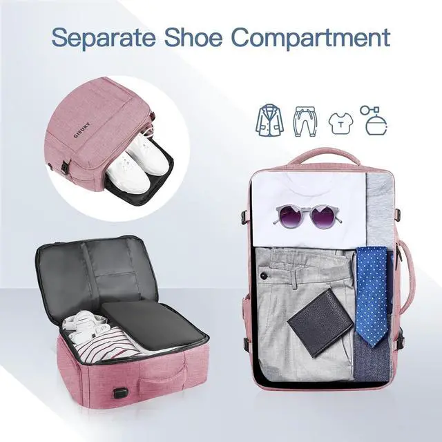 DescriptionProduct descriptionThis 55L carry on backpack with expandable design offers you more capacity for packing. Unzipping to get 60L storage, then can easily accommodate clothing, shoes, and travel essentials, etc. It fits overhead and under seat while on state of standard carry on size, is an ideal choice for men, women, weekend traveler, or occasional vacationer. Manufacturer Contact InformationGieury