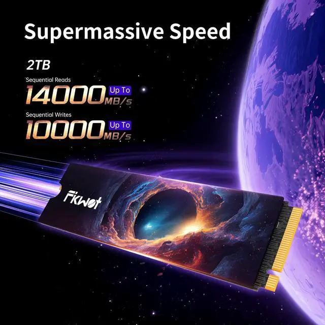 Breakthrough performance: The 2TB M. 2 SSD combines PCIe Gen 5.0 x4 technology with read speeds up to 14, 000MB/s and write speeds up to 12, 500MB/s, delivering lightning-fast transfer speeds, eliminating lag, increasing responsiveness, and enabling smooth data streaming. Designed for hardcore gamers, professionals, and creators ^^