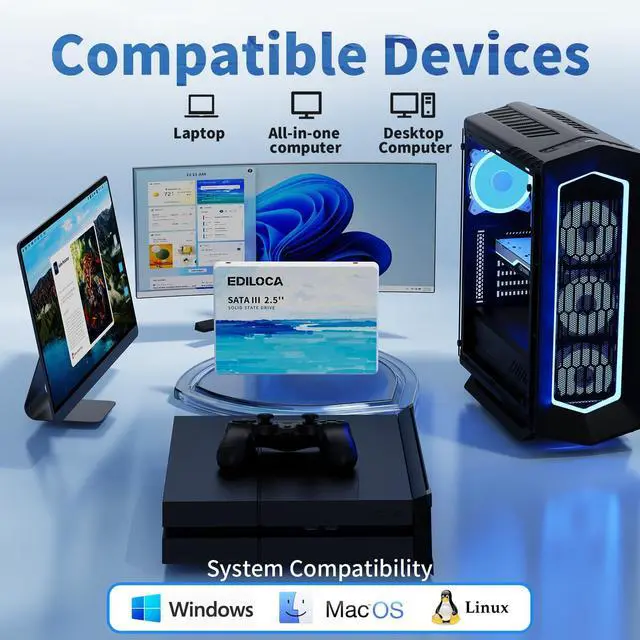 High-speed performance upgrade, goodbye to lagExperience lightning-fast read speeds of up to 560MB/s and write speeds of 510MB/s with EDILOCA 2.5" SATA III SSD, delivering 3x faster performance than traditional HDDs. Accelerate system boot time by 60%, reduce game loading delays, and streamline large file transfers for seamless multitaskingideal for gamers, professionals, and daily users. Backward compatible with SATA II (3Gb/s) interfaces for versatile upgrades. ^^ 3D QLC NAND technology, durability and capacity combinedEngineered with advanced 3D QLC NAND flash memory, this internal SSD achieves high-density storage while ensuring extended lifespan and stable performance.