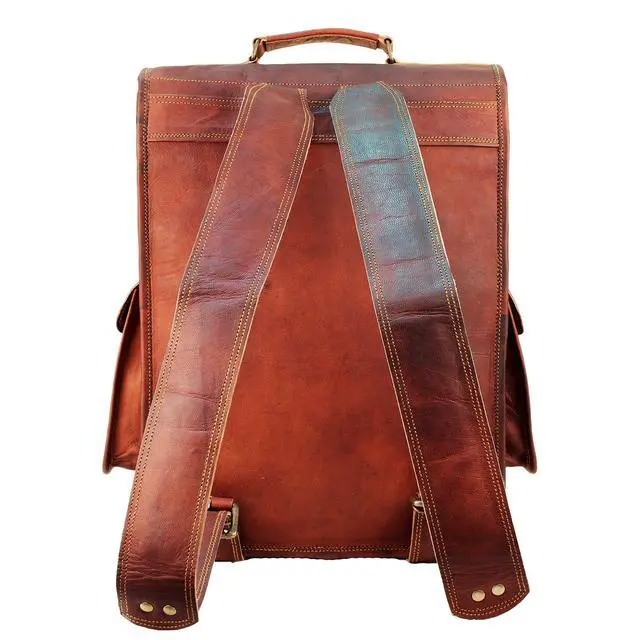 Dimension 16 Inch High 12 Inch Width. This Brown Leather backpack has 3 internal compartments Can accommodate books laptop, 1 zipper pocket inside the bag and also 1 zipper pocket under the flap which is very useful to keep you mobile and handy stuff. Two pocket on the both side of the bag. Leather backpacks are perfect for all day use for work. A perfect Leather bookbag or Computer backpack. ^^ Storage Whether it is your phone, and any other important stuff you can store it in this Vintage backpack for men and you also dont need to worry about its safety because there is zipper area for safekeeping of your items.